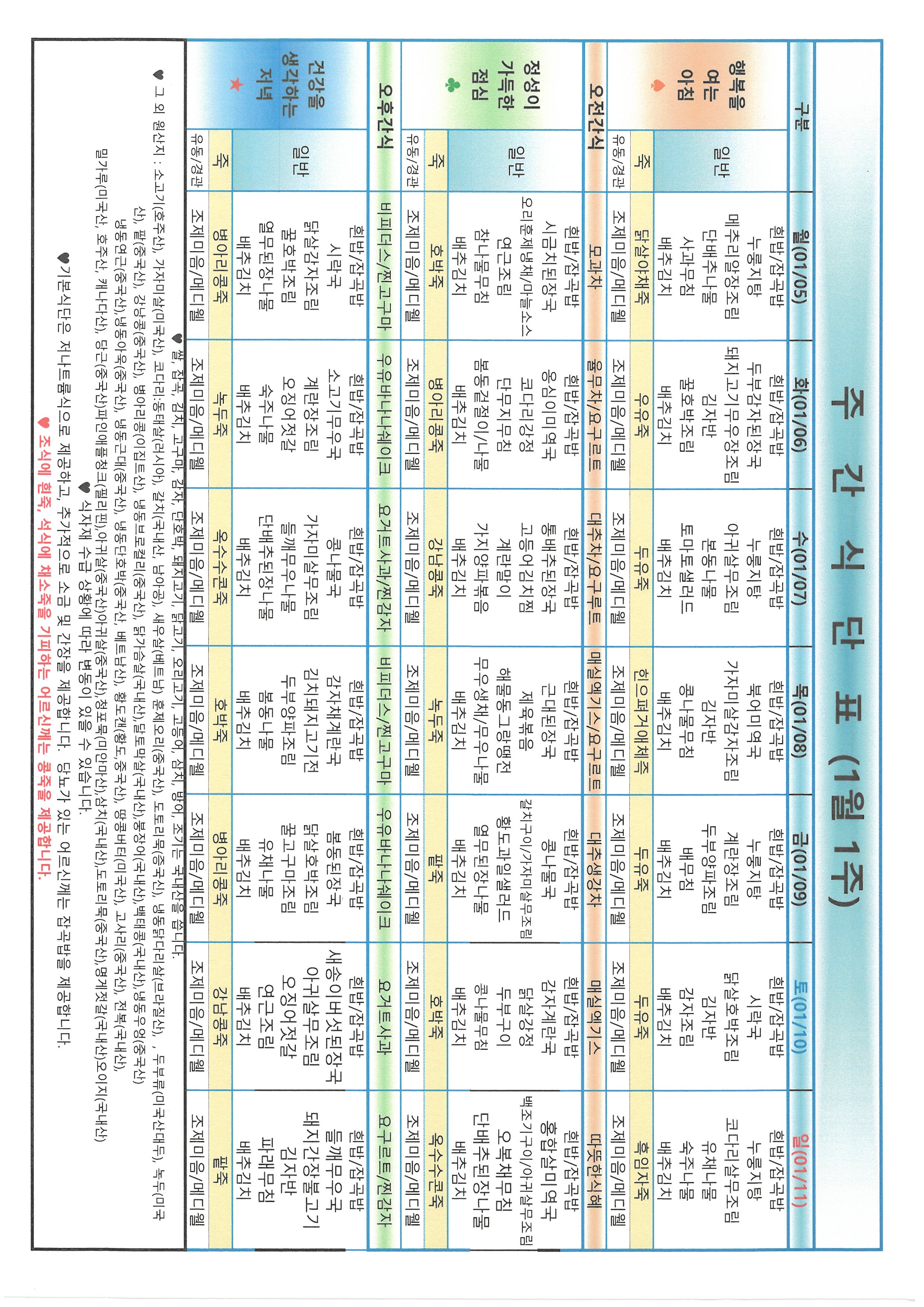 금주의 식단표입니다.