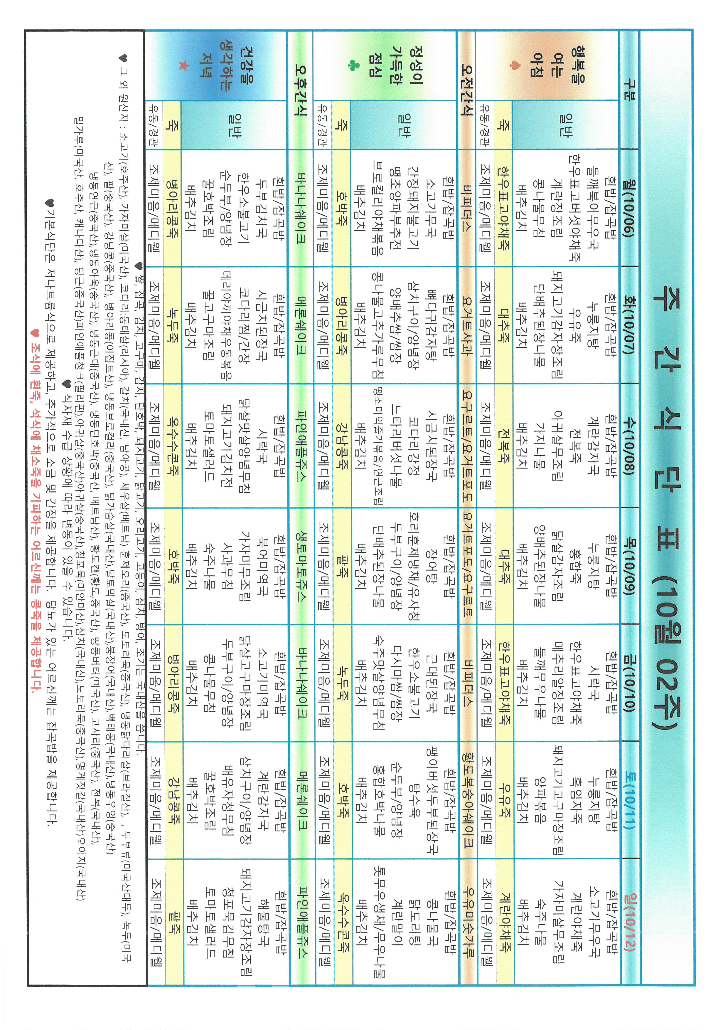 금주의 식단표입니다.