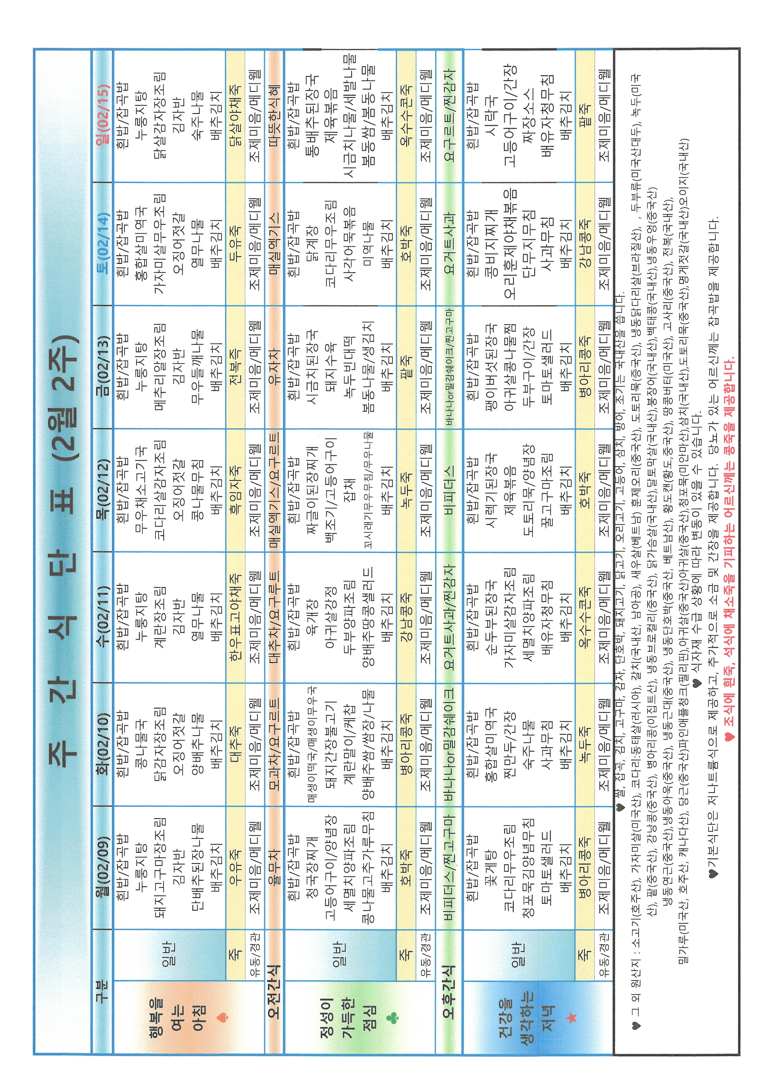 금주의 식단표입니다.