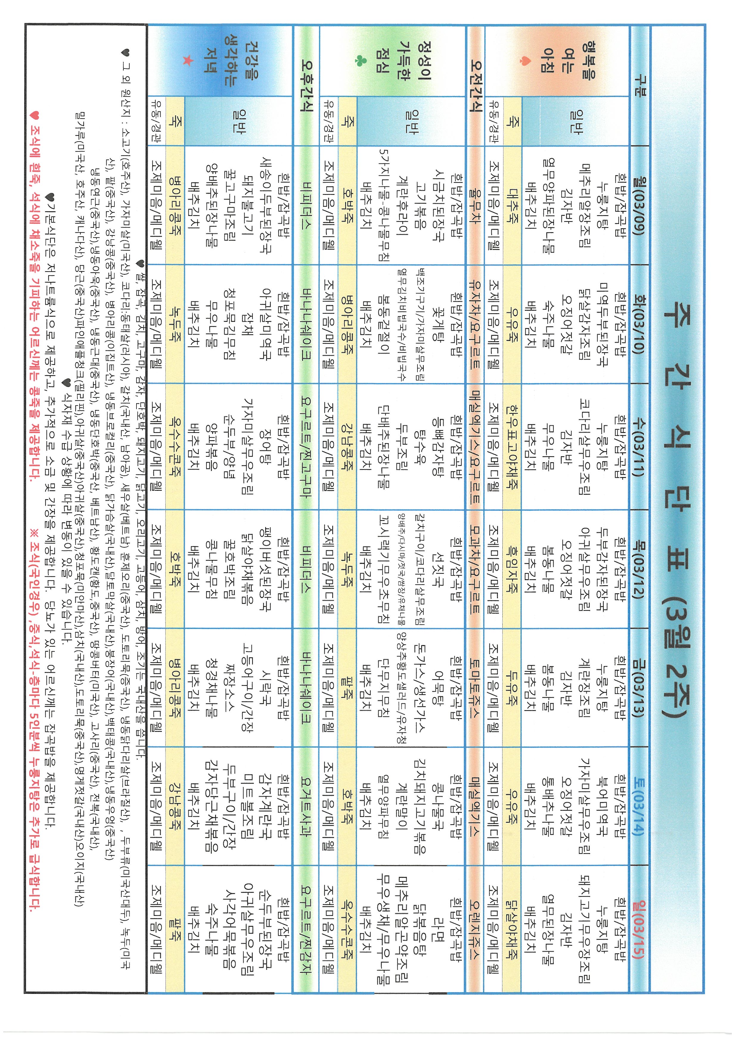 금주의 식단표입니다.