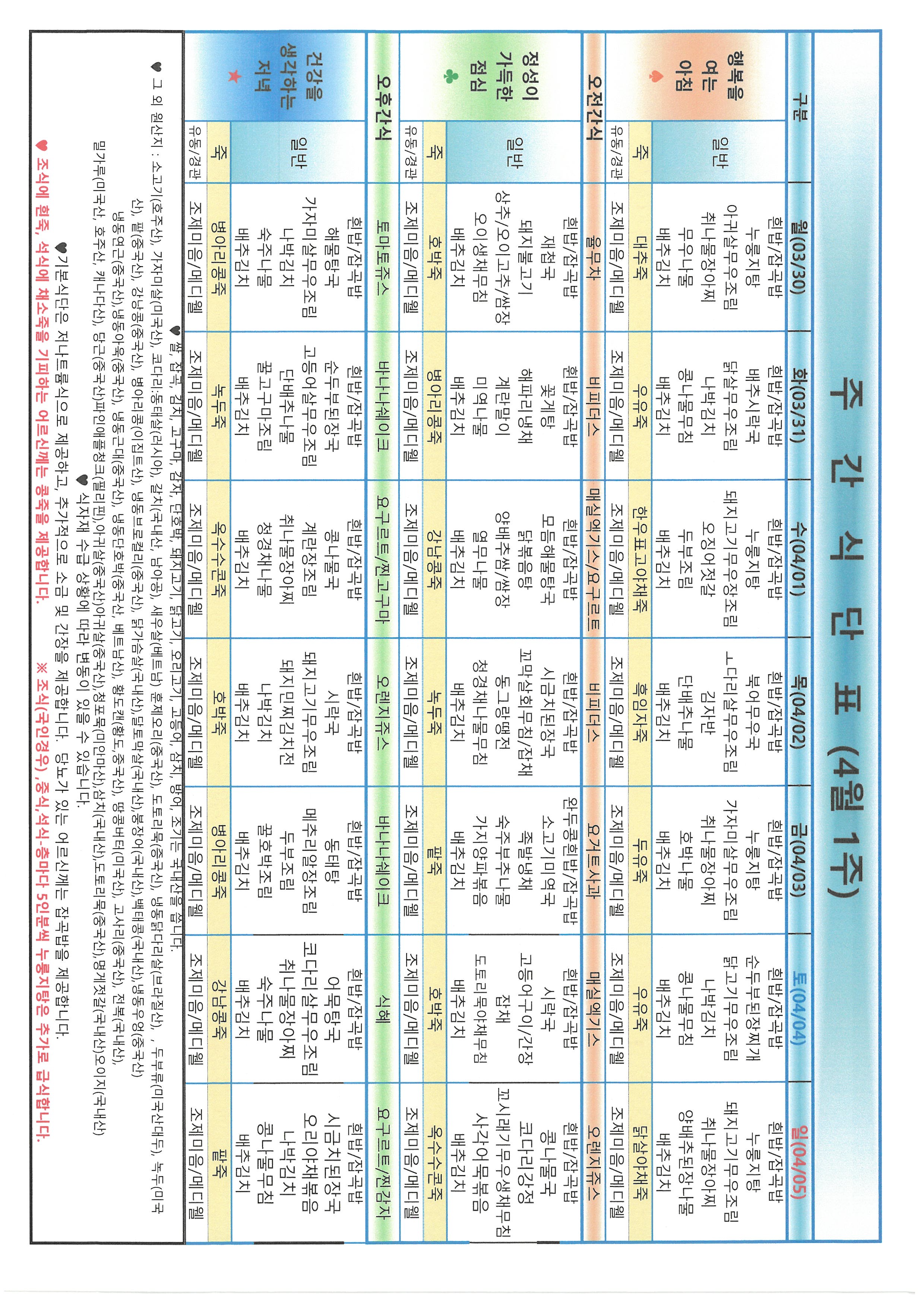 금주의 식단표입니다.